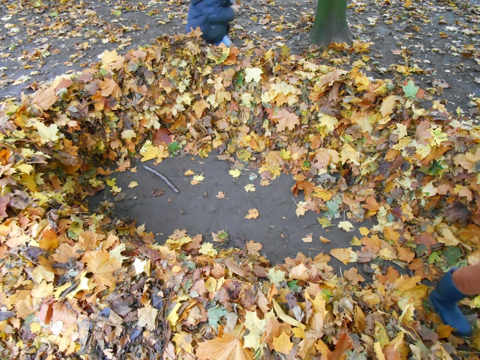 plezier buiten in een iglo (=huisje) van blaadjes