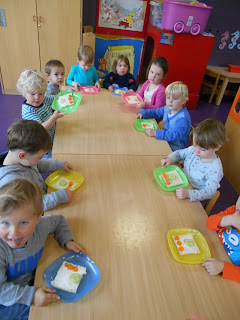 Eetbare wasmachine maken: wortels snijden voor de knopjes